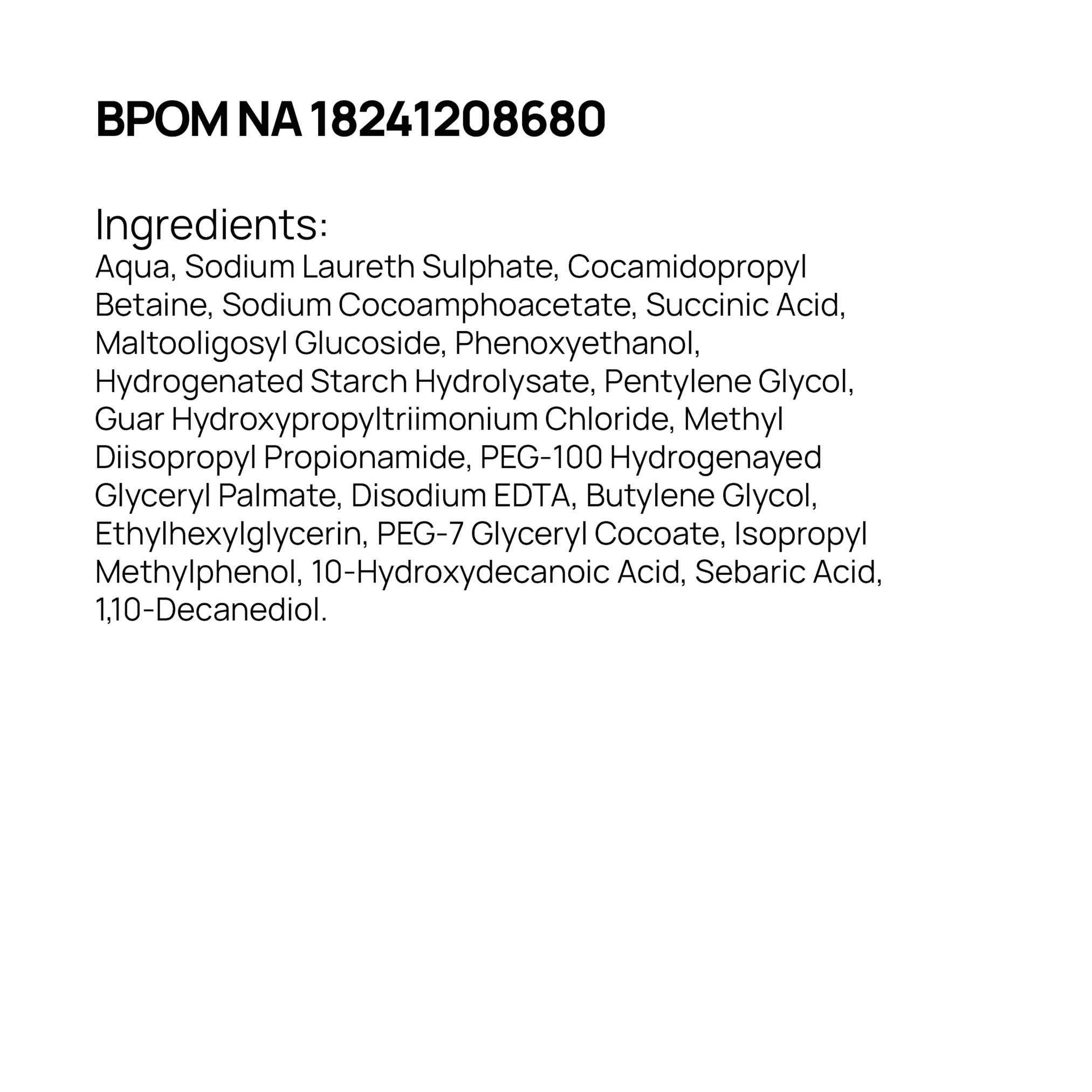 Facial wash dengan Succinic Acid 2% diformulasikan khusus untuk kulit berjerawat dan berminyak, dilengkapi dengan IPMP & 10-HDA.